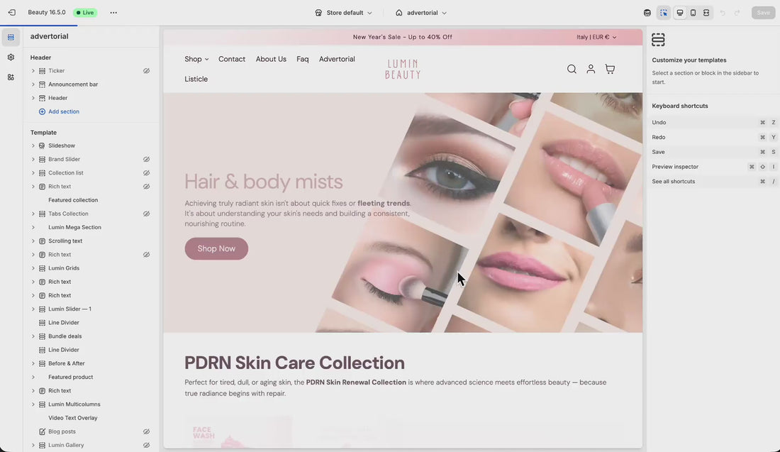 Yes, you can. You're able to change the theme colors to match your brand's style. Regarding fonts, usually Shopify’s font library is sufficient, but if you want to add custom fonts to the theme, we have a dedicated "lumin-custom-fonts" section, where you can any custom fonts you own.